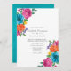 Convite de casamento de fiesta floral de aquarela com lavagem de cor d'água turquesa inversa projetada para ser rápida e facilmente personalizada de acordo com as especificações de seu evento.