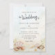 Esses convites elegantes são perfeitos para casamentos de destino tropical ou qualquer praia de verão e casamento de temas costeiros, e apresentam um fundo de textura de cor d'água abstrato, com conchas na praia no fundo. Localizar produtos correspondentes na coleção.
