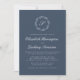 Este elegante design de convite de casamento apresenta um monograma de script branco rodeado por uma coroa botânica de arte de linha em um fundo azul de indigo. Os nomes aparecem em um script branco, com o resto do texto na fonte de serif clássica. A parte traseira da placa é índigo sólido.