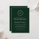 Este elegante design de convite de casamento apresenta um monograma de script branco rodeado por uma coroa botânica de arte de linha num fundo verde esmeralda. Os nomes aparecem em um script branco, com o resto do texto na fonte de serif clássica. A parte de trás do cartão é verde esmeralda sólido.