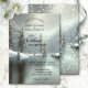Convite de casamento com uma cena sonhadora da Terra Maravilha de inverno com luzes cintilantes. Bonita para um casamento durante o Natal.