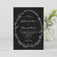 Este adorável convite de casamento rústico apresenta um belo fundo preto, coroa de flores silvestres desenhada à mão, e tipografia elegante. É uma design perfeita para um casamento rústico, mas elegante! Disponível em muitas cores... consulte a coleção para mais itens.