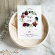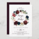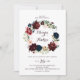 Esta aquarela ilustrada em outono, convite de casamento floral é perfeito para um casamento simples. A design apresenta marinho de aquarela pintada à mão artística azul, burgundy, vermelha, rosas de pincel e peônias com folhas verdes elegantes, inspirando a colorida beleza do outono idílico.