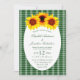 Convite para casamento de girassol com fundo de xadrez