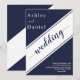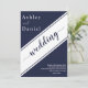 Este elegante convite de casamento azul marinho é perfeito para um casamento moderno. o simples design apresenta uma caligrafia branca elegante num fundo azul.