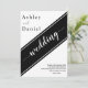 Este elegante convite de casamento preto e branco é perfeito para um casamento moderno. o simples design apresenta uma caligrafia branca elegante num fundo preto.
