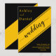 Este elegante convite de casamento preto e dourado é perfeito para um casamento moderno. o simples design apresenta uma elegante caligrafia de ouro num fundo preto.