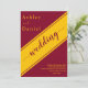 Este elegante convite de casamento de burgundy e ouro é perfeito para um casamento moderno. O simples design apresenta uma elegante caligrafia de ouro num fundo de burgundy.