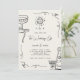 Ponha um tom lúgubre com esta Mão Branca de Monograma Desenhada de Casamento. Apresentando um na moda, sofisticado design com óculos de champanhe desenhados à mão, esboços de rabisco e uma bola retrô disco, este convite expele uma atraente e vintage estética francesa. Perfeito para um casamento com uma vibração, o monograma do guião adiciona um toque pessoal e elegante!