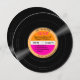 Inspirado pelas brilhantes luzes coloridas do salão de dança, este convite de casamento ao estilo vinil disco ousado é uma escolha divertida para o seu casamento único. Negrito e brilhante em tons de rosa e laranja, ele tem todos os detalhes essenciais para o seu casamento retrô dos anos 70 ou discoteca. Recursos: seu monograma, localização, data, hora, código qr, site de casamento e algumas outras linhas para detalhes curtos. Cor-de-rosa e laranja-quente e apanhador de olhos numa imagem de registro de vinilo preto. Divertido e engraçado como nos anos 70! Todo texto é personalizado por você. As cores do rótulo e do texto podem ser personalizadas na Ferramenta Design. A cor do registro é preta.