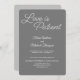 Convite de casamento elegante e moderno na cor cinza. Este design apresenta uma tipografia moderna para as palavras "O amor é paciente". Personalize este anúncio de casamento que também serve como convite de recepção de casamento com os nomes dos noivos e todos os detalhes da festa sobre a troca de votos e festa de casamento. Este layout chic e elegante é fácil de personalizar.