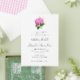 O texto formal e elegante fácil de personalizar convida os convidados a celebrar a união de um casal no casamento. O novo estilo tradicional do milênio apresenta uma paleta colorida doce e feminina de branco e rosa e uma ilustração perfeita de flor de hydrangea antiga.