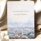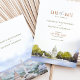 Anuncie seu casamento em estilo com este sofisticado cartão "Salve a Data", maravilhosamente ilustrado com uma renderização aquática da icônica linha do horizonte de Washington DC. A frente apresenta uma visão refinada do Capitólio e do Monumento de Washington, enquadrados por tons suaves de azul-céu, cinzas nebulosas e toques de folhagem verde-oliva quente. A parte de trás do cartão complementa a frente com uma perspectiva detalhada do Capitólio refletida em água calma, capturando uma cena tranquila em tons mudos de sábio e bege. Esse cartão artístico é ideal para casais planejando um eterno e uma celebração elegante na capital da nação. Perfeito para dar um tom elegante e memorável para o seu dia especial.