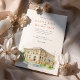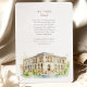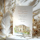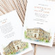 Convide seus convidados para uma sofisticada comemoração da cidade com este belo convite de casamento em aquarela, mostrando o magnífico Centro Cultural de Chicago. A trabalho de arte captura elegantemente a arquitetura clássica desse marco histórico, feita em um estilo aquoso suave e refinado que destaca seus detalhes grandiosos e complexos. O prédio é representado em cremes quentes, beges e castanhos leves, com um telhado azul-cinza distinto. As representações artísticas da folhagem moldam-na graciosamente: de um lado, ramos finos com toques de laranja, amarelo e vermelho autóctone, e de outro, delicados borras verdes. Os arbustos verdes esmagados adoram a base. Este convite é perfeito para casais que procuram uma estética de casamento clássica, culta e urbana. A frente apresenta elegantemente seus detalhes de casamento, enquanto o lado inverso oferece "Os Detalhes Mais Finos" para informações de convidado. A paleta de cores completa combina cremes e beges estáticos, cinzentos arquitetônicos e azuis, com verdes frescos e sotaques autóctones quentes.