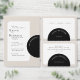 Um círculo simples com texto curvo sobrepõe os detalhes do casamento in a box.