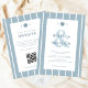 Celebre seu amor ao lado da praia com este convite de Casamento do Código QR Azul de Seashell Monograma Costeiro. Com uma elegante design de ostras e conchas com sotaques listrados, é perfeito para um casamento à beira-mar. Compartilhe facilmente o site do casamento, os detalhes de alojamento e recepção através de um conveniente código QR. Personalize com suas iniciais e um ampersand para um incrível toque de casamento na praia!