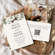 Celebre seu amor no meio da magia da temporada de inverno com este elegante convite de fotos evergreen. Um layout refinado destaca sua foto junto a um conveniente código QR para fácil acesso ao RSVP ou ao site de casamento. Apresentando tons verdes naturais e tipografia eterno, este design equilibra lindamente calor e sofisticação — perfeito para casamentos no inverno em ambientes elegantes, rústicos ou florestais.