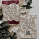 As bordas de cima e de baixo deste elegante convite de casamento moderno apresentam uma cor-de-água vermelha borrifada com borda falsa de ouro. O texto personalizável combina escrita manual, fontes sans serif e itálicas em cinzas de carvão em uma imagem de fundo da seda de marfim. O verso fornece espaço para detalhes de casamento em um fundo de seda de marfim, juntamente com um código QR que os convidados podem digitalizar para visitar seu site e RSVP, o que economiza o custo de imprimir e enviar cartões RSVP separados.