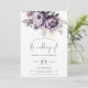 Casamento de Código QR do Elegante Purple Lilac Florals. Lindas flores decoram a borda superior. Adicione seu código QR ao seu site de casamento no verso para que seus convidados possam RSVP e ver todos os detalhes on-line sem a necessidade de gabinetes separados. Uma tipografia informal em preto para o título principal "Casamento de complementar o resto do texto que você pode facilmente personalizar". Também disponível como download digital.
