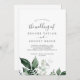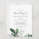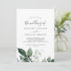 Este convite de casamento de esmeraldas verdes e QR é perfeito para um casamento de boho. A elegante, porém rústica, design apresenta folhas de cor verde-d-água escura e umeucalipto com uma moderna sensação de floresta boêmica. Salve o papel, incluindo um código QR para seu convidado para ver detalhes, RSVP ou ambos.