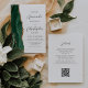 A borda esquerda deste elegante convite de casamento moderno apresenta uma esmeralda verde aquarela agate borda com falsa brilho dourado. O texto personalizável combina o script de cinza de carvão e as fontes sans serif em um fundo branco. O verso oferece espaço para detalhes do casamento, juntamente com um código QR que os convidados podem digitalizar para visitar seu site e RSVP, o que economiza o custo de impressão e envio de cartões RSVP separados.
