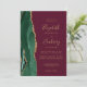 A borda esquerda deste elegante convite de casamento moderno apresenta uma esmeralda verde aquarela agate borda com falsa brilho dourado. O texto personalizável combina manuscritos dourados, copperplate e fontes itálicas em um fundo vermelho arrojado. Adicione sua foto favorita ao verso, juntamente com texto adicional e um código QR para enviar convidados para o site do seu casamento.