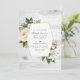 Convite de casamento Floral com peões brancos, ervas selvagens, algodão e lírios com estrutura geométrica de ouro personalizável para suas especificidades de evento. Ideal para qualquer tema ou casamento de jardim. O código QR no verso direciona para o seu local de casamento onde o pessoas pode aprender mais e rsvp.