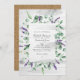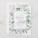 Lavanda verde de prata verde de folha, convite para casamento no cais rústico do país com tipografia elegante, projetada para ser rápida e facilmente personalizada de acordo com as especificidades de seu evento. Ideal para qualquer tema ou casamento de jardim. O código QR no verso direciona para o seu local de casamento onde o pessoas pode aprender mais e rsvp.