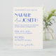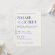 Este convite para o casamento é perfeito para o seu casamento se você estiver procurando um design único e fácil de ser editado. Que apresenta um plano de fundo cremoso. E os primeiros nomes da noiva e do noivo azul elegante na fonte parisiense. e informações editáveis com nomes também na parte de trás e código QR personalizável para o rsvp online e detalhes do casamento. Barato e é também um e-convite eletrônico digital se você quiser enviá-lo por texto ou email. Todas as informações são personalizáveis clicando no botão personalizar. Então pegue-o e faça-o seu para que você faça você convidar noivos e excitados.