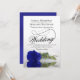 Este belo convite para o casamento apresenta uma bela fotografia de um solteiro de longo , azul real ou rosa de cobalto, deitado do seu lado, refletindo numa piscina de água com ondas e ondulações. O design apresenta um roteiro de caligrafia rico com um fazer de cauda longa e encaracolada, moderno e clássico. Uma maneira elegante, sofisticada e chique de convidar seus amigos e família para compartilhar seu dia especial. A parte traseira do cartão tem um código QR para o seu site de casamento e uma breve nota instruindo as pessoas a visitar o site para obter detalhes e RSVP.