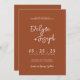 Um convite de modelo de casamento simples e simples e elegante. Que apresenta fundo laranja queimado. E os primeiros nomes da noiva e do noivo, com letras brancas e simples, e informações editáveis com nomes de noiva e noivo e código QR personalizável no verso. Barato e é também um convite eletrônico digital. Todas as informações são personalizáveis clicando no botão personalizar. Então pegue-o e faça-o seu para que você faça você convidar noivos e excitados.
