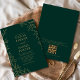 Comemore seu casamento com o eterno luxuoso usando este convite de casamento esmeralda verde e ouro com um código QR embutido. Os convidados podem simplesmente digitalizar para RSVP, visualizar o seu site de casamento ou acessar os detalhes do evento instantaneamente. O fundo esmeraldo com sofisticada tipografia de ouro cria um olhar refinado e elegante, enquanto o design limpo mantém seus detalhes de casamento claros e na moda. Perfeito para o outono, inverno, ou casamentos de gravata negra.