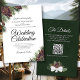 Este belo convite para o casamento apresenta um design ruidoso à porta com pinecones pintados manualmente com aquarelas e galhos de pinheiro em tons de verde-floresta e castanho-castanho. O layout simples apresenta uma elegante inscrição de script com um código QR personalizável no verso direcionando seus convidados para o site de casamento para obter mais informações e para RSVP. Na moda e chic, este design é perfeito para um casamento ao ar livre, montanha ou destino florestal.