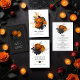 O convite de casamento temático do Dia das Bruxas, laranja e gótico floral preto, é personalizável para suas especificidades. Ideal para qualquer tema ou casamento de jardim. O código QR no verso direciona para o seu local de casamento onde o pessoas pode aprender mais e rsvp.