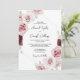 Este Convite Floral Rosa Burgundy Red Blush está em uma paleta de cor suave de rosa-pincel, vermelho-burgundy, verde-sábio e branco. Apresenta belos rosas românticos de aquarela e flores com eucalipto verde. Esta bela paleta de cores é perfeita para primavera, verão ou casamento outono. Personalize com todos os detalhes do seu casamento. O verso inclui um código QR de casamento para seus convidados para RSVP online.