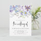 Convite de Casamento de Código QR do Script Floral Floral Roxo Elegante. Personalize facilmente o texto. Basta substituir o URL de exemplo no campo modelo por seu próprio URL e seu código QR será criado automaticamente para a conveniência de seus convidados responderem online.