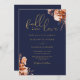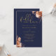 Este elegante convite de casamento pode ser personalizado com suas informações em tipografia de ouro-chico com seus detalhes no site de casamento e seu código QR no verso em um fundo azul-marinho. Projetado por Thisnotme©