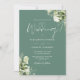 Este elegante verde botânico do eucalipto deixa o convite para casamento pode ser personalizado com suas informações em tipografia química com seus detalhes do site de casamento e seu código QR no verso. Projetado por Thisnotme©
