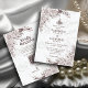 Chamadas de Casamento do Código QR Islâmico do Lace Floral Branco. Frente de Convite: Um cenário de mármore branco intocado fornece uma base luxuosa para este convite de casamento elegante. Os deliciosos designs de rendas florais, que lembram intrincados bordados, estão posicionados em cantos opostos, criando uma estética feminina e assombrosa visualmente. O convite começa com a frase sagrada "Bismillah" na elegante caligrafia árabe, invocando bênçãos divinas sobre o casal. Abaixo, os nomes dos casais são exibidos com destaque, seguidos de detalhes essenciais do casamento, como data, hora e local. Convite de volta: O verso do convite espelha a estética da frente, com o mesmo fundo de mármore branco e designs de rendas florais. Uma tipografia ousada incita os convidados a "responderem gentilmente" pela data de vencimento do RSVP. O URL do site do casamento é fornecido para obter informações mais detalhadas, e um código QR é colocado de forma conveniente para acesso rápido a detalhes digitais. Os nomes dos casais também são incluídos no verso para facilitar a referência.