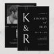 Crie uma primeira impressão impressionante para o seu grande dia com este convite de casamento do monograma moderno. O elegante design apresenta uma sofisticada paleta de cores preto-e-branco e uma tipografia de eterno em negrito, destacando as iniciais do casal. No verso, uma foto pessoal em preto-e-branco do casal feliz e um código de QR digitalizável adicionam um toque moderno, fazer que seja fácil para os convidados acessar todos os detalhes de seu casamento, desde o RSVP e o registro de presentes até as direções e informações do hotel. Este convite combina perfeitamente o estilo clássico com a conveniência moderna, definindo o tom perfeito para uma celebração que é simultaneamente chique e inesquecível. Criado pela imprensa simplesmente de farmácia.