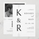 Crie uma primeira impressão impressionante para o seu grande dia com este convite de casamento do monograma moderno. O elegante design apresenta uma sofisticada paleta de cores preto-e-branco e uma tipografia de eterno em negrito, destacando as iniciais do casal. No verso, uma foto pessoal em preto-e-branco do casal feliz e um código de QR digitalizável adicionam um toque moderno, fazer que seja fácil para os convidados acessar todos os detalhes de seu casamento, desde o RSVP e o registro de presentes até as direções e informações do hotel. Este convite combina perfeitamente o estilo clássico com a conveniência moderna, definindo o tom perfeito para uma celebração que é simultaneamente chique e inesquecível. Criado pela imprensa simplesmente de farmácia.