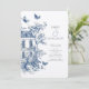 Convites Casamento do Código QR Rustic Blue Toile De Jouy