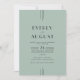 Este refinado convite de casamento de dupla face da coleção Everly apresenta sotaques de linha geométrica e tipografia retrô em verde-silvo. É mínimo, mas glamouroso e ideal para casamentos modernos com talento vintage. Salve o papel, incluindo um código QR para seu convidado para ver detalhes, RSVP ou ambos.