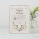 Evoque o espírito do Oeste Selvagem com o nosso Convite Vintage Longhorn Skull Wedding. Apresentando um crânio mais longo, enfeitado com flores delicadas e folhagem em um estilo rústico de aquarela ocidental, este convite expele encanto e elegância. Perfeito para casais que buscam um casamento antigo, country, ou de temas ocidentais, ele dá o tom para uma celebração memorável cheia de beleza eterno e de prazer rústico.