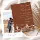 Convocação para o casamento do deserto de Terracotta Moderno Procurando um convite para o casamento moderno em estilo boho com um deserto ao estilo ocidental? Este design apresenta uma fonte moderna de caligrafia monolônica e uma imagem desértica desenhada e esticada.