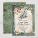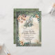 Um convite de casamento cor de água fantasioso feito em uma antiguidade como o papel, com uma fronteira verde envelhecida com flores e vinhas e um dragão por um castelo no topo. Personalize os campos de texto para atender às suas necessidades de casamento.