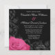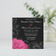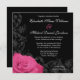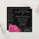 O rosa bonito do rosa com redemoinhos elegantes do flourish é destacado em um fundo preto. Um design elegante do convite do casamento para um casamento temático do rosa clássico. Flourishes pelo design de Mujka do ©