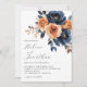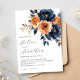 Ponha o tom para o seu dia com este Convite para Casamento do Jardim Azul Terracotta, Marinho Floral Elegante, uma mistura espantosa de azul marinho, ferrugem, laranja queimado e tons de terracota que se sentem ininterruptamente quentes e eternos. Com lindas flores aquáticas e um roteiro de na moda caligrafia, essa design traz a mistura perfeita de moderno e romântico. Quer você esteja planejando um casamento no jardim de vassoura, uma celebração de outono rústica, ou um evento de verão inspirado no pôr do sol, esta paleta de cores ajustado como um sonho. Você pode personalizar facilmente os detalhes para refletir seu estilo, de nomes a datas a locais. Este convite está pronto para uso digital, perfeito para compartilhar online ou imprimir à sua conveniência. Comece a personalizar seu convite hoje e uva seus convidados com uma pré-visualização de casamento que é tão bela quanto seu grande dia.