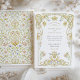 Este elegante convite para o casamento apresenta um quadro de rolagem desenhado à mão, enfeitado com delicadas flores de aquarelas em azul, azul, pêssego e tons de sábio. O ornamentado Rococo inspirou-se graciosamente em curvas de borda em torno do painel de texto, incorporando motins florais estilizados e sotaques botânicos para uma estética sofisticada do livro de histórias. A parte de trás do cartão é rica em decoração com um padrão simétrico inspirado no jardim, recheado de videiras, tulipas e elementos florais em camadas. Sua paleta vintage e detalhes refinados evocam o sentimento de um antigo papel de parede ou manuscritos botânicos históricos. Ideal para casamentos de primavera, comemorações de jardim, ou casais que buscam elegância romântica e eterno.