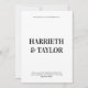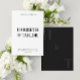 Este convite para o casamento apresenta uma design limpa e minimalista com tipografia ousada e centrada, usando fontes serif grandes para os nomes do casal e texto maiúsculo e menor para os detalhes do evento, tudo contra um simples fundo branco. O fundo tem fundo preto com 2 monograma inicial.